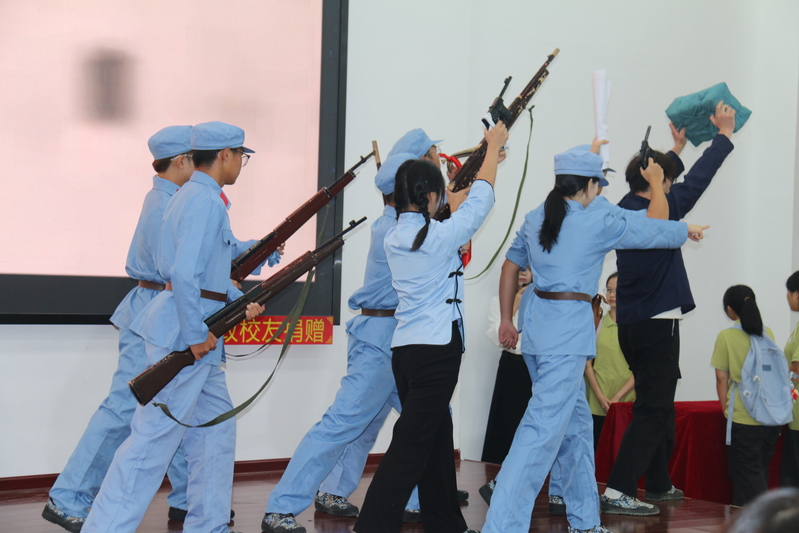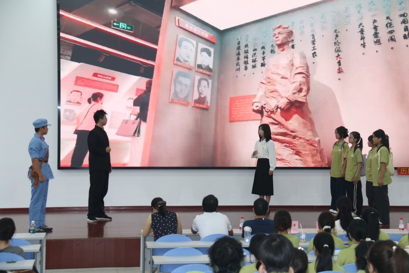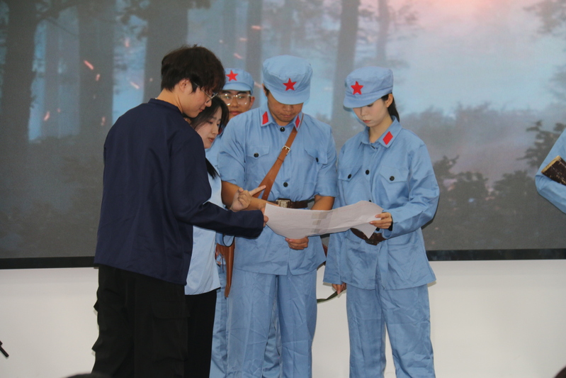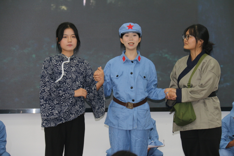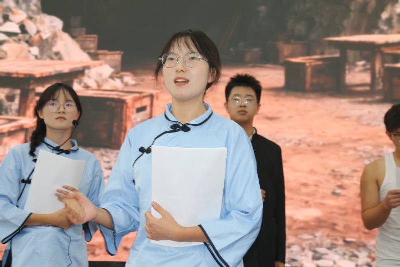典礼尾声,同学们带来的文艺演出精彩纷呈,将活动氛围推向了高潮。邱孝龙、李思雨两位同学合唱《年轮》,婉转的歌声里满是对时光的珍视,也暗合了“传承历史、接续奋斗”的主题;鸿骐宣讲团带来的原创红色话剧《烽火铸黄石》则以抗日战争为背景,用生动的演绎再现了黄石地区的革命先辈们为民族独立挺身而出的英雄事迹,沉浸式的表演让在场师生仿佛穿越时空,深刻感悟到“一寸山河一寸血”的峥嵘岁月;“不忘初心,继续前进,万水千山,最美中国道路”,研究生芦世源以一首《不忘初心》唱出了新时代青年赓续红色血脉、勇担复兴使命的坚定决心,为这场融合“开学迎新”与“历史纪念”的活动画上了圆满的句号。