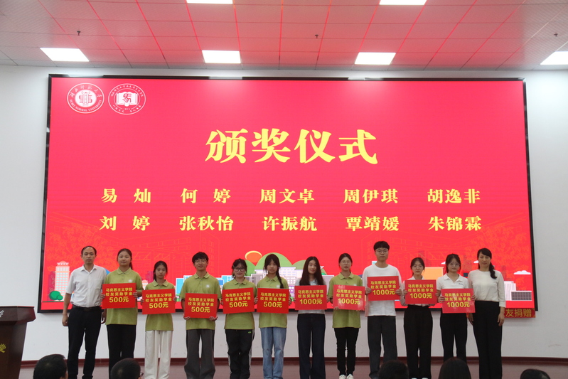 随后,李洁书记宣读了2025年学院校友奖助学金获得者名单,这既是对获奖学生的肯定,也是对全体学子的激励。李洁书记与唐兴军院长共同为获奖学生颁发证书与奖金,镜头定格下一张张自豪的笑脸,这份“见贤思齐、奋勇争先”的精神,也在现场悄然传递。