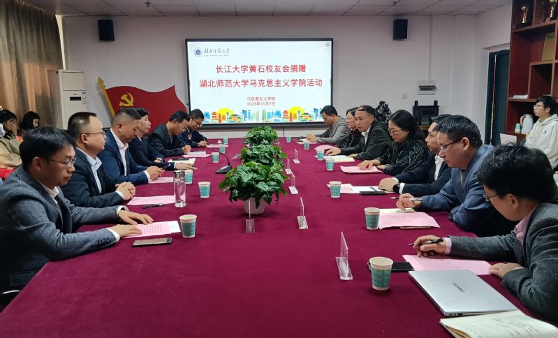 俞玲教授对长大黄石校友会的捐赠致以最诚挚的感谢。她指出,校企进一步深入合作不仅促进学生的发展,对学校与企业而言更是一种合作共赢,她衷心感谢各位对湖师,以及对马院的支持与助力。刘洋处长代表学校校友工作处,对长大黄石校友会一行表示欢迎,他指出校友会的建设在共谋发展上要进一步加强,学校愿意同企业一起探索合作新模式,寻找促进双方共发展的新思路。他表示,学校已做好校庆相关安排,并在会上向与会各位嘉宾送上了邀请函,欢迎长大黄石校友会同仁出席庆典。