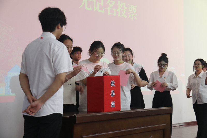 竞职演讲结束后,由全体代表进行无记名投票,监票人张无悔同学向大会公布本次投票结果。