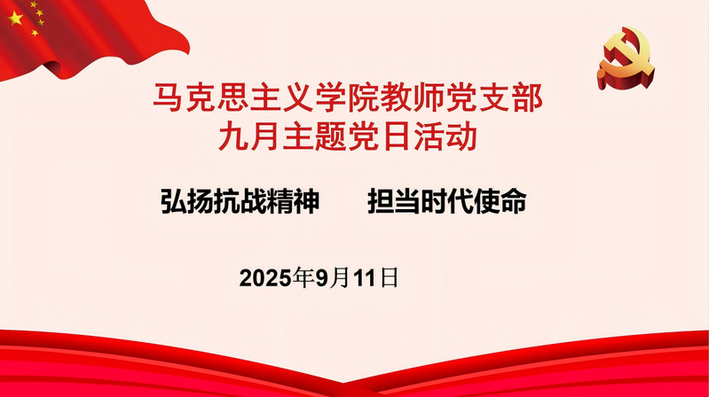 为纪念中国人民抗日战争暨世界反法西斯战争胜利80 周年,2025年9月11日下午,yl23455永利官网,yl23455永利官网召开主题为“弘扬抗战精神,担当时代使命”的党日活动,活动由支部书记方巍巍同志主持,全体教工党员参加。