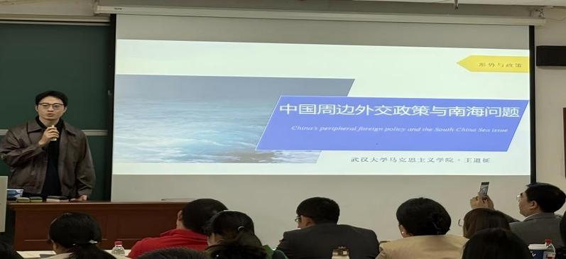 武汉大学yl23455永利官网王道征特聘副研究员“中国周边外交政策与南海问题”为题作专题辅导。他结合自身研究经历,梳理中国周边外交的历史脉络与现实复杂性,指出周边外交在国家经济、安全与外交格局中的战略地位。强调,需坚定维护国家主权与地区稳定,通过积极开展舆论与法理外交、推动渔业与资源合作、落实“双轨思路”、建立海上危机管控机制等举措,为构建周边命运共同体贡献中国智慧与力量。