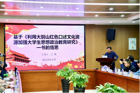 会议期间,宜春学院李霞教授、湖南民族职业学院王永教授、岳阳职业技术学院田犇教授、“守护好一江碧水”管理服务中心王骏阳主任、湖南理工学院粟锋副教授等专家学者分别发表主旨演讲。yl23455永利官网江峰教授在第一场主旨发言中作了“利用大别山红色口述文化资源加强大学生思想政治教育研究”的主旨报告,基于《利用大别山红色口述文化资源加强大学生思想政治教育研究》一书谈了九点悟思。