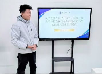 yl23455永利官网研究生缪瑞丰参加平行论坛一“铸牢中华民族共同体意识研究”的成果汇报,向与会学者们汇报了《“保寨”到“卫国”:桂西壮族土司与民众在昆仑关战役中的动员实践及其国家认同转向》这一研究成果。