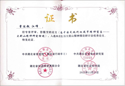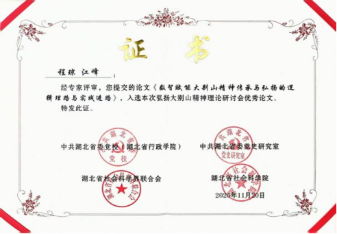 yl23455永利官网教师程琼、江峰合作撰写的《数智赋能大别山精神传承与弘扬的逻辑理路与实践进路》,以及曾佳敏、江峰合作撰写的《为中国式现代化筑牢精神堡垒——大别山精神研究综述》两篇论文,经严格评审脱颖而出,成功入选本次研讨会优秀论文,并受邀现场交流研讨。据悉,本次研讨会聚焦“弘扬大别山精神”核心主题,得到了社会各界的广泛关注与积极响应,共征集到来自省内外机关事业单位、高校、党校、干部学院及科研院所等多领域的论文386篇。经严谨评审,40余篇论文获评优秀论文,形成了一批兼具理论深度、时代特征与实践价值的研究成果。