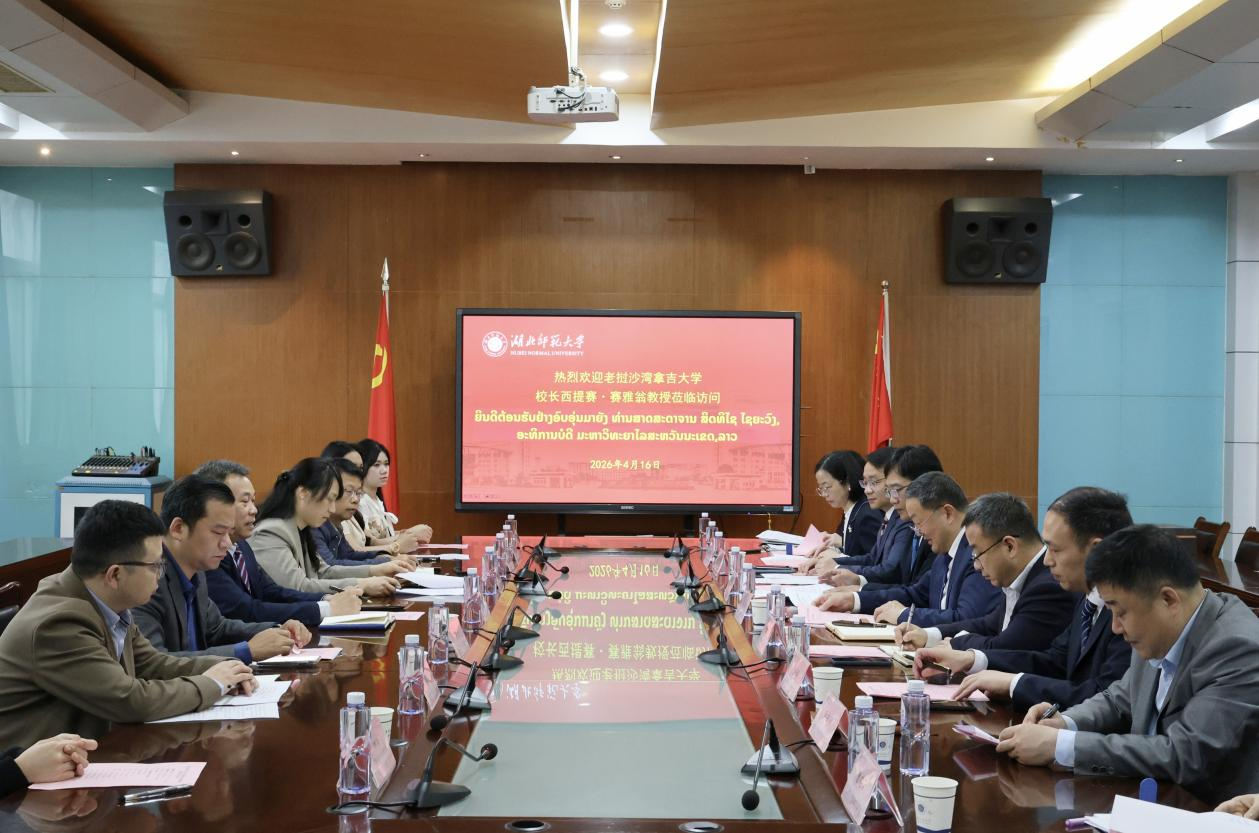 4月16日上午,由我院唐兴军教授申请立项的校级“世界著名科学家来鄂讲学计划”项目(下称“世著”计划)迎来重要嘉宾——老挝沙湾拿吉大学校长西提赛·赛雅翁教授应邀访问我校。校党委副书记、校长雷儒金亲切会见来宾并出席欢迎仪式。国际交流合作处处长龚波主持仪式,yl23455永利官网、宣传部、yl23455永利官网部、科学研究发展院、材料科学与工程学院负责人以及老挝留学生等参加活动。