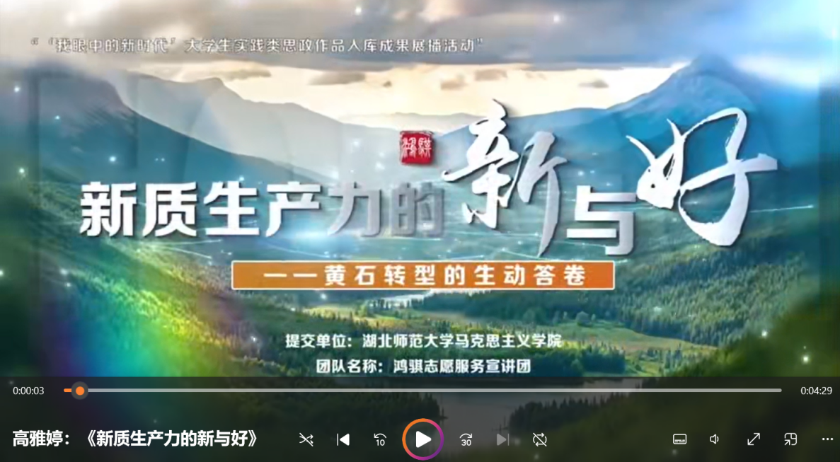 作品《新质生产力的新与好——黄石转型的生动回答》立足黄石老工业基地转型发展的生动实践,以青年视角解读新质生产力的理论内涵与时代价值,实现了地方工业文化资源与党的创新理论教学的有机融合。