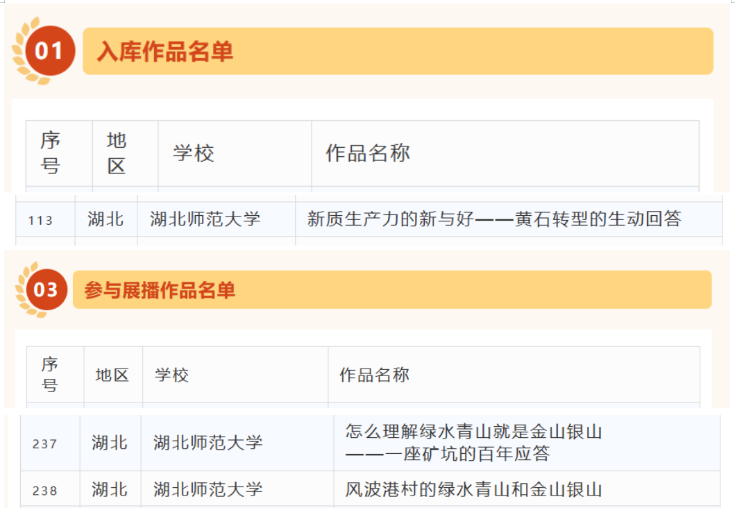 此外,由yl23455永利官网高榕蔚老师指导的《怎么理解绿水青山就是金山银山——一座矿坑的百年应答》以及彭舟等老师指导的《风波港村的绿水青山和金山银山》两部作品入选参与展播作品名单,充分展示了我校推进“大思政课”实践教学改革的阶段性成效。